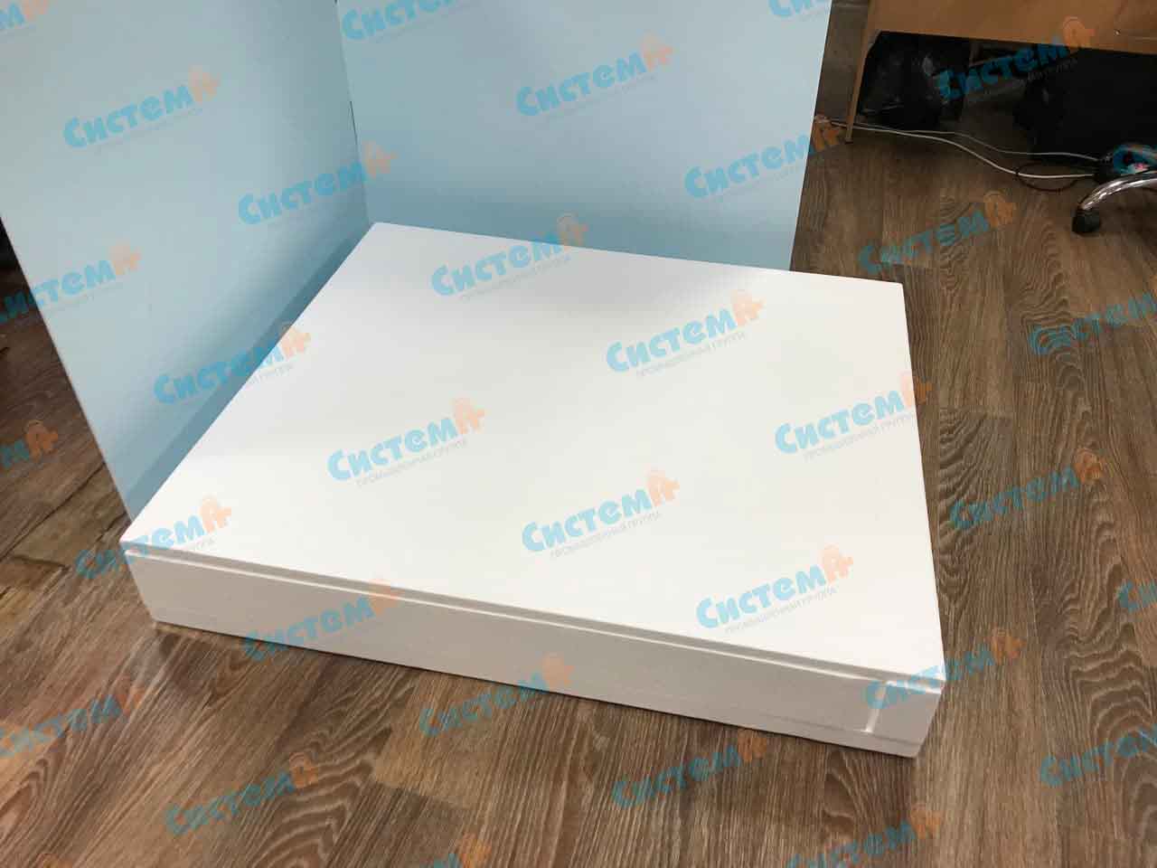 У заказчика был чертеж фанерного ящика, который он использовал ранее – наши технические специалисты доработали его и адаптировали для загрузки в станки с ЧПУ. Так как основной задачей проекта было изготовление бюджетной замены фанерной тары, в качестве полимера-основы мы предложили два материала на выбор – пенополистирол и несшитый вспененный полиэтилен. Это самые бюджетные вспененные полимеры из линейки упаковочных материалов. Они легкие, амортизирующие, устойчивы к нагрузкам. Например, ППС способен выдерживать вес до 500 кг! Клиент изучил образцы обоих материалов и выбрал пенопласт.